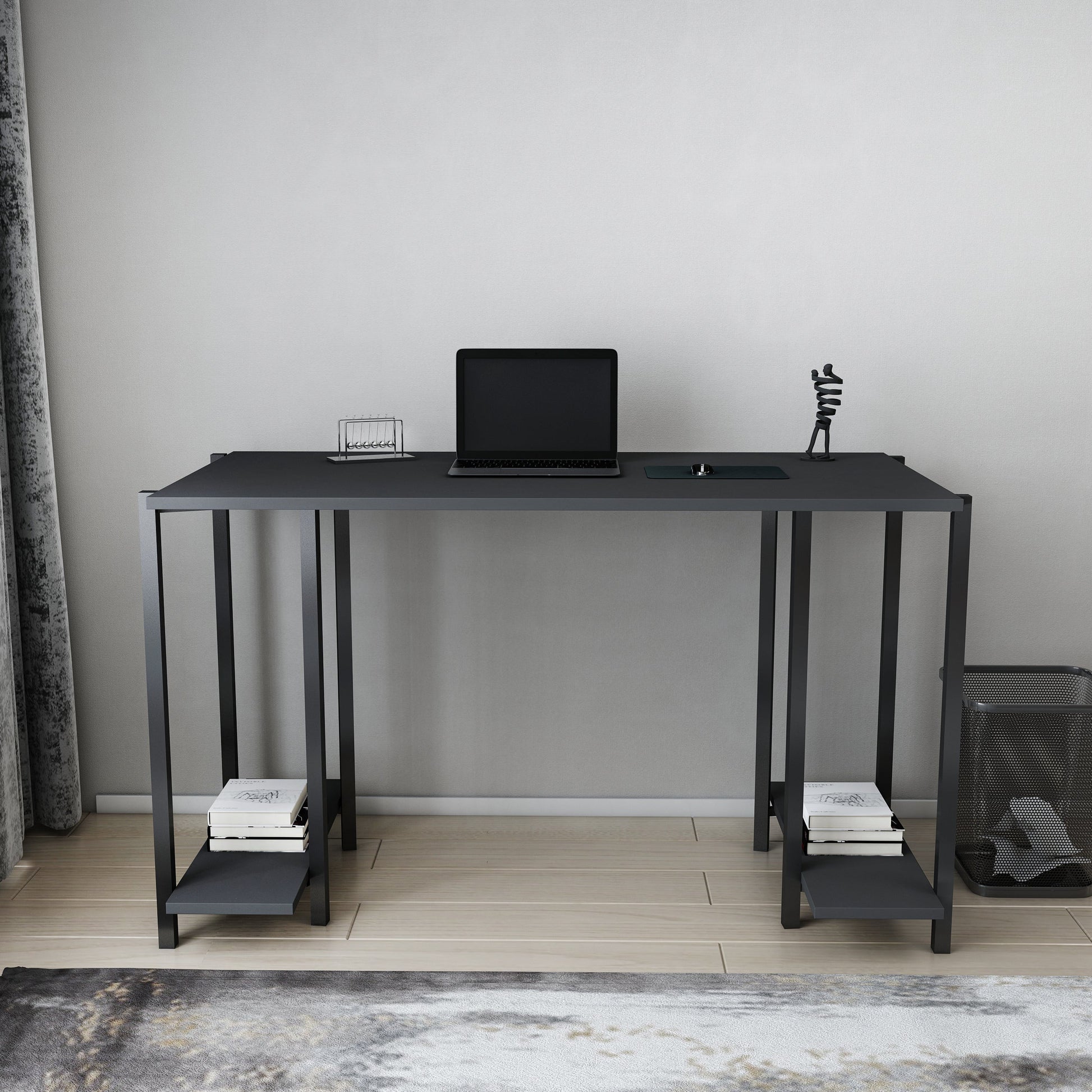 Presenting the Academy Desk, a robust yet airy design that perfectly accommodates your work-from-home setup. This versatile piece features sturdy cabinetry, offering abundant storage for your work essentials, and is supported by simple metal legs for added stability. Two storage surfaces on both sides further enhance its functionality, allowing for easy organization of your workspace.
