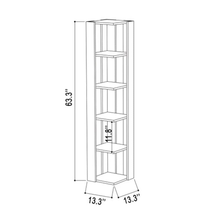 Introducing our sleek and contemporary corner bookcase, an exquisite addition to any room craving a touch of elegance and practicality. Standing at an impressive 63.39 inches tall, this towering piece is designed to make the most of your space, fitting snugly into any corner with a symmetrical base of 13.39 inches. Its slender 11.81-inch depth allows for a significant presence without overwhelming the room, providing a perfect balance of form and function.
