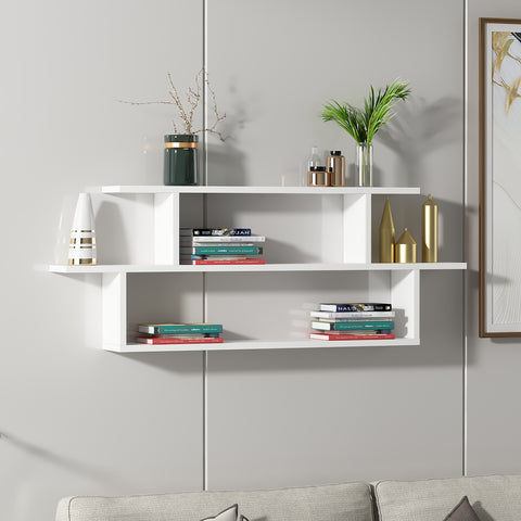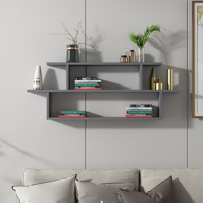 Elevate your home decor with this Modern Minimalist Floating Console Shelf. With its practical and innovative design, this space-saving, wall-mounted piece is perfect for living rooms, bedrooms, studies, or offices. The open design allows for easy access and versatility, letting you use it as a wall shelf or a wall-mounted console table. Featuring three spacious horizontal shelves, it offers ample storage for your essentials while maintaining a clutter-free environment.