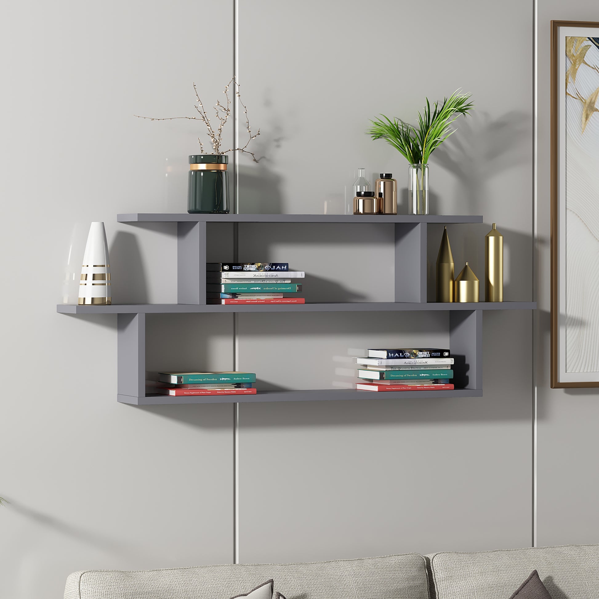 Elevate your home decor with this Modern Minimalist Floating Console Shelf. With its practical and innovative design, this space-saving, wall-mounted piece is perfect for living rooms, bedrooms, studies, or offices. The open design allows for easy access and versatility, letting you use it as a wall shelf or a wall-mounted console table. Featuring three spacious horizontal shelves, it offers ample storage for your essentials while maintaining a clutter-free environment.