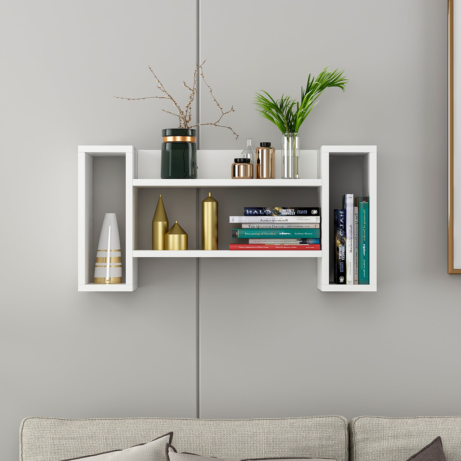 • Unique geometric design with two vertical shelves and one horizontal shelf creates an eye-catching focal point, adding a modern and chic touch to any room in your home, perfect for contemporary interiors.